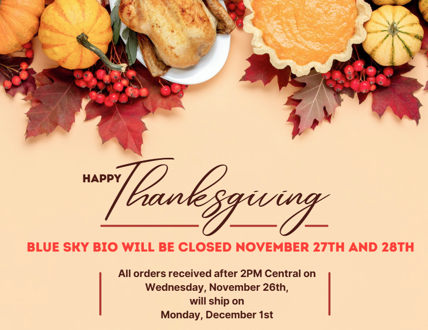 - UPS, Fedex and Blue Sky Bio are not responsible for late arrivals due to poor weather conditions.